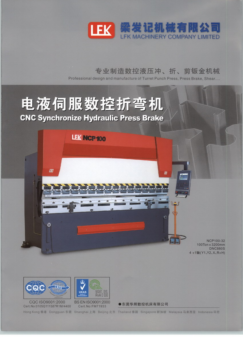 LFK香港梁發(fā)記機(jī)械集團(tuán)公司其下3間下屬公司,已發(fā)展成為集科研、開發(fā)、生產(chǎn)、銷售以及服務(wù)于一體的高新科技企業(yè)。1992年自置30000平方米廠房,成立了東莞華輝數(shù)控機(jī)床有限公司,在位于交通便利的廣東省東莞市清溪鎮(zhèn)。2008年2月自置70000多平方米廠房,成立了信宜華輝數(shù)控機(jī)床有限公司。2014年11月自置10000多平方米廠房,成立了信宜協(xié)華精密鈑金有限公司。現(xiàn)共有600多名人員。在管理方面采用全電腦的管理體系。具有先進(jìn)的技術(shù)、優(yōu)良的品質(zhì)、優(yōu)質(zhì)的服務(wù)、贏得了廣大客戶的贊譽(yù)。