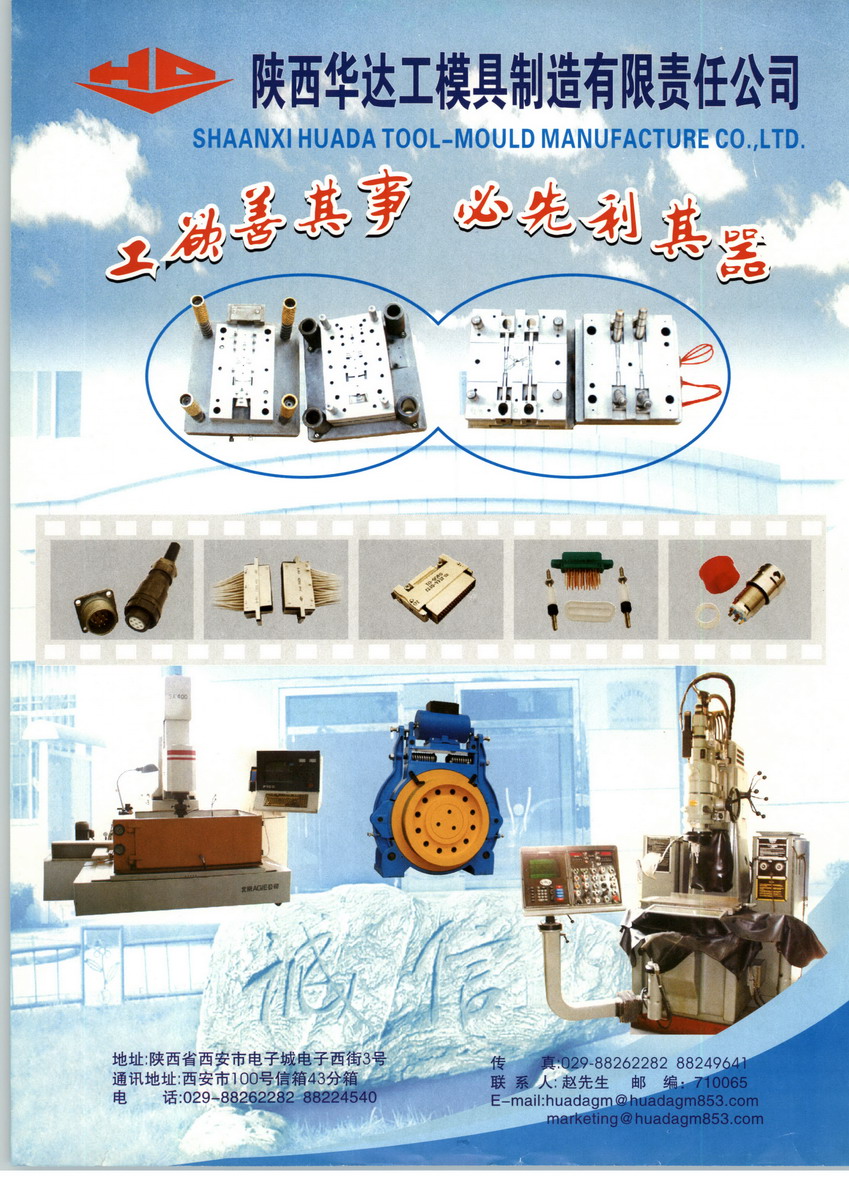 陜西華達(dá)工模具制造有限責(zé)任公司,位于有著十三朝歷史的古都西安,座落于高新開發(fā)區(qū)電子工業(yè)園內(nèi),是具有近40多年電子元器件生產(chǎn)、工模具制造歷史的高新技術(shù)企業(yè)。陜西華達(dá)工模具制造有限責(zé)任公司主要從事“華達(dá)”牌電連接器的研制、開發(fā)、生產(chǎn)及各類復(fù)雜模具的設(shè)計與制造。