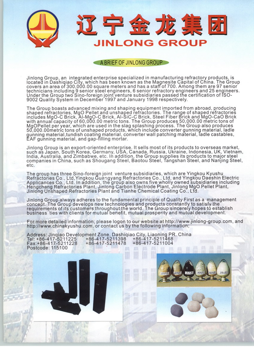 金龍集團——位于中國著名的鎂都遼寧省大石橋市,是集科研、開發(fā)、生產(chǎn)、銷售、服務(wù)為一體的綜合性企業(yè),是全球較大的鎂質(zhì)耐火材料生產(chǎn)基地之一。